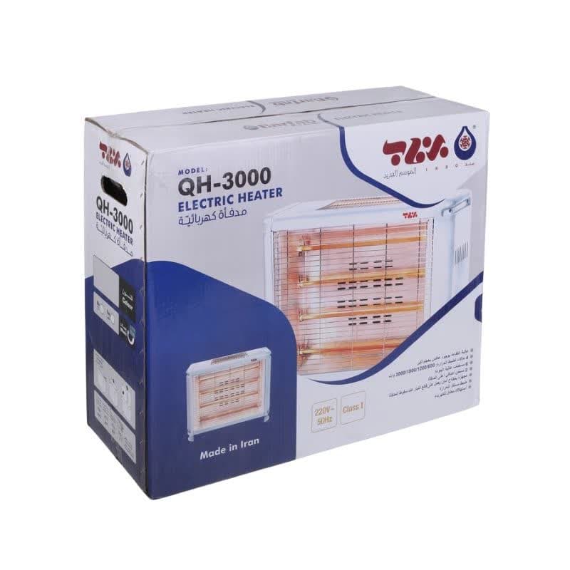 بخاری برقی برفاب مدل QH-3000 با توان حرارتی 3000 وات وسیلهای کارآمد با کاربری آسان و بازده حرارتی خوب است که در فصل سرد فضایی دلپذیر در خانه و محل کار ایجاد میکند. این بخاری مجهز به 6 المنت شیشهای است که با فناوری جابهجایی- تابشی و بدون ایجاد شعله حرارت ایجاد میکند. به همین دلیل حتی در مکانهای بسته نیز میتوانید بدون نگرانی از کاهش اکسیژن محیط، گرمای مطلوب داشته باشید. فن در این مدل بخاری برای انتشار گرما بهصورت همگن تعیبه شده است. این محصول مجهز به ترموستات است که توسط آن میتوان میزان حرارت دلخواه را تنظیم کرد. به کمک 4 کلید دیگر نیز میتوان 6 المنت و فن دستگاه را روشن و خاموش کرد. برای بازدهی بیشتر از صفحه استیل منعکس کننده نور و حرارت در پس زمینۀ المنتها استفاده شده است. این دستگاه مجهز به سیستم عملکرد ایمن است که در صورت واژگون شدن ناگهانی، بهطور خودکار خاموش و از بروز آتشسوزی جلوگیری میکند.