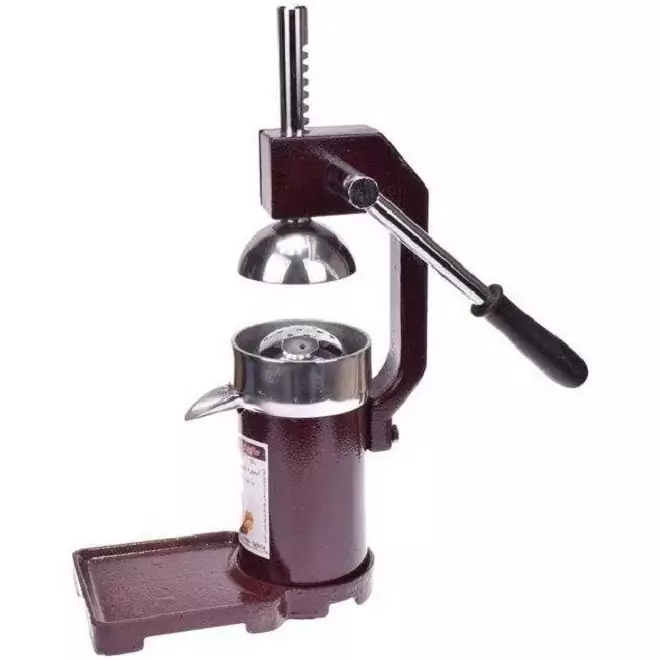آبمیوه گیری چهار فصل فلزی بیتا Metal Fruit Juicer BITA 101 دارای یک دسته اهرمی قدرتمند برای آبگیری انواع میوه های آبدار مانند انار، پرتقال، انگور، لیمو، گریپ فروت و دیگر مرکبات بدون فشار به پوست میوه می باشد. آبکش این آبمیوه گیر از جنس آلومینیوم پرداخت شده ضد زنگ و مقاوم در برابر اسید میوه با سوراخ های متعدد برای گرفتن تفاله ها بدون سر ریز شدن آبمیوه می باشد که دارای خروجی مخصوص زیر آبکش می باشد. این آبمیوه گیر فلزی محصولی ساخت ایران می باشد کاملاً دستی می باشد و بدون نیاز به برق به راحتی کار می کند. دسته و چرخ دنده های آن تمامی از جنس فولاد آبکاری شده ساخته شده اند و دارای کفی مخصوص قرار دادن ظرف آبمیوه می باشد. جنس بدنه محصول از چدن با پوشش رنگ کوره ای نسوز ضد زنگ می باشد و دستگیره آن پلاستیک مستحکم می باشد