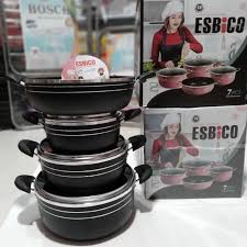 سرویس قابلمه 7 پارچه اسبیکو شامل 3 عدد قابلمه استاندارد و یک تابه می باشد که رنگ این سرویس ثابت بوده و مقاومت بالایی در برابر حرارت دارد و گرما را در خود نگه داشته و از سرد شدن غذا جلوگیری می کند همچنین دارای لبه ی چدنی دور تابه و قابلمه بوده که با وجود ضربه فرم خود را از دست نمیدهد و داخل این قابلمه فرم لانه زنبوری دارد که به رنگ مشکی و طلایی می باشد و خاصیت این ظروف به این ترتیب می باشد که مزه غذا را تغییر نمیدهد و به مرور زمان رنگ و کیفیت خود را ثابت نگه میدارد.