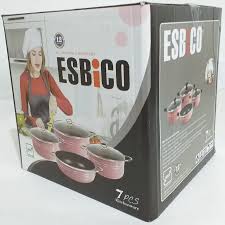 ظروف با روکش گرانیت یکی از بهترین انواعی است که می توان در بازار یافت زیرا این ظروف با این روکش خاصیت نچسب بودن را از تفلون و مقاومت بالا را از سرامیک به ارث برده اند. سرویس قابلمه 7 پارچه اسبیکو دارای علامت استاندارد می باشد این محصول شامل سه عدد قابلمه و یک عدد ماهیتابه به همراه 3 عدد درب پیرکس سوپاپ دار می باشد.