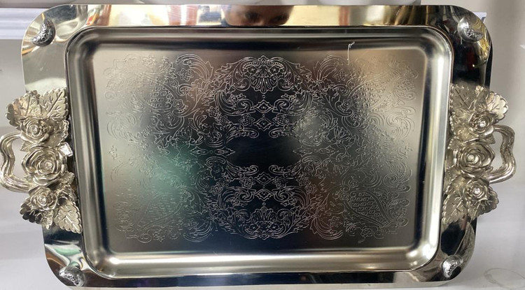 سینی استیل مستطیل طرح دار با دسته پروانه