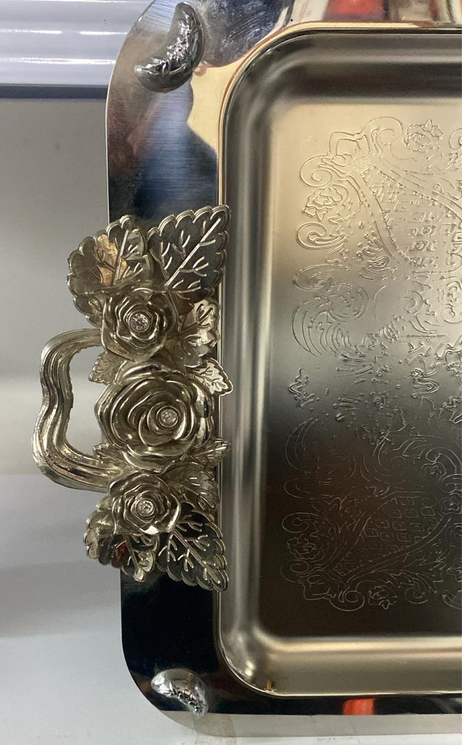 سینی استیل مستطیل طرح دار با دسته پروانه
