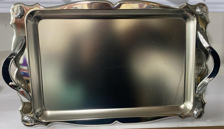 بدنه این سینی از فلز با کیفیت بالا با آبکاری براق ساخته شده است که مانند آینه نور را منعکس میکند. لبههای کنگرهدار و منحنی سینی، تضاد زیبایی با فرم مستطیل آن ایجاد کرده و به آن هویتی کلاسیک-مدرن بخشیده است. دستههای کشیده و صیقلی این مدل، نه تنها مکمل زیبایی آن هستند، بلکه با طراحی ارگونومیک خود، جابهجایی ظروف را بسیار ایمن و راحت میسازند.