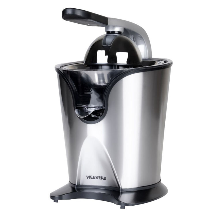 آب مرکّباتگیری برقی ویکند مدل WKJ-800S محصولی مناسب جهت آبگیری انواع مرکّبات از جمله پرتقال، نارنج، لیمو شیرین، گریپ فروت و لیمو ترش میباشد. سهولت در استفاده در عین طرّاحی بهروز، کارایی دوچندان را در هنگام استفاده از این محصول برای شما به ارمغان میآورد. این دستگاه برقی و از نوع اهرمی میباشد. پساز قراردادن میوه بر روی سری و بهمحضِ واردکردن فشارِ اندکی بر روی اهرم، بهسادگی آبگیری انجام میشود. طرّاحی اهرمیِ این دستگاه موجب سادگی در استفاده و واردکردن حدّاقل فشارِ خارجی جهت انچام آبگیری میشود. دهانهی خروجی آب مرکّبات از جنسِ استیل ضدّزنگ و با عملکرد ضدّچکّه میباشد. همچنین فیلتر این دستگاه از جنسِ استیل ضدّزنگ بوده و به راحتی قابل شستوشو میباشد. اهرم متّصل به این دستگاه، از جنس آلومینیوم میباشد و قسمت انتهایی اهرم و محلّ قرارگیری دست با روکشی از جنس پلاستیک نرم پوشیده شده است که در هنگام استفاده کمترین فشار به دست وارد میشود. این دستگاه مجهّز به ۲ سَری آبگیری کوچک و بزرگ پلاستیکی ولی باکیفیّت جهت آبگیری انواع مرکّباتِ کوچک و بزرگ میباشد. سَری این دستگاه از آن جدا میشود و این مهم موجب سهولت در شستوشوی این محصول خواهد شد. مخزن این دستگاه از جنس پلاستیک بوده و حجم آن حدود ۵۰۰ میلیلیتر میباشد. در قسمت زیرین این دستگاه چهار پایه با قابلیت ضدّلغزش تعبیه شده است و موجب ثابتماندن دستگاه در هنگام استفاده خواهد شد. با خرید این محصول لذّت استفاده از یک دستگاه حرفهای با طرّاحی ساده و کارا را تجربه خواهید کرد.